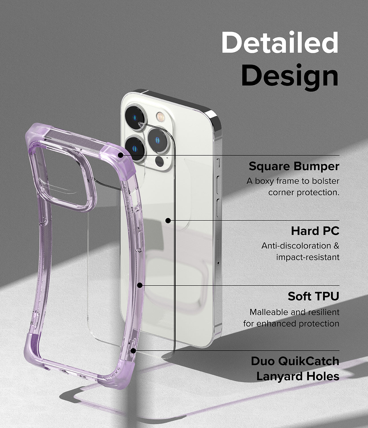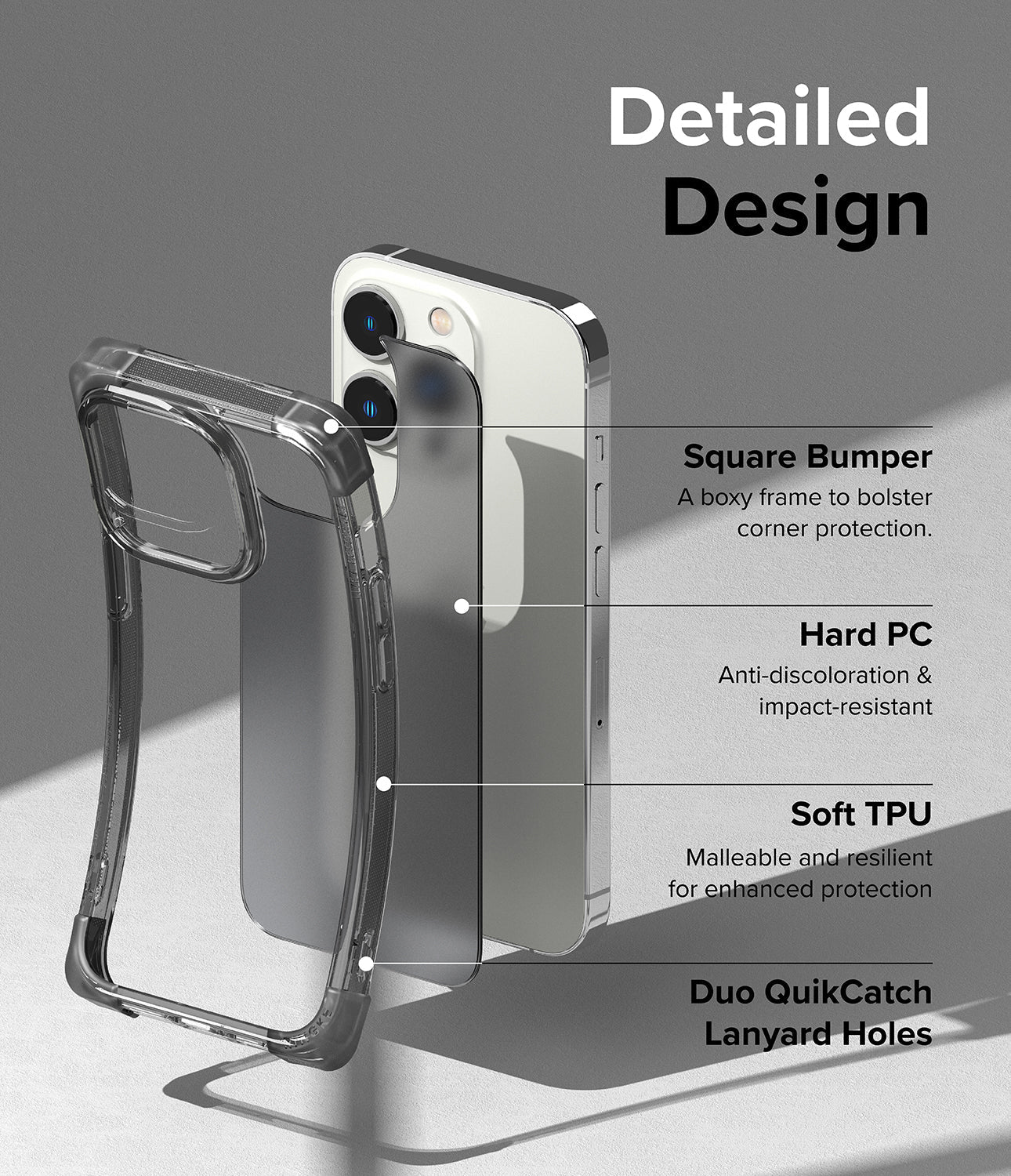 - Lightweight and slim cover made of hard polycarbonate back panel and shock-absorbent TPU frame.