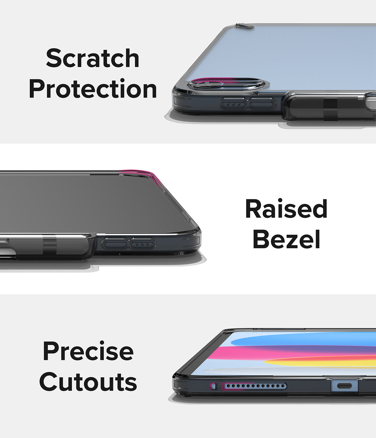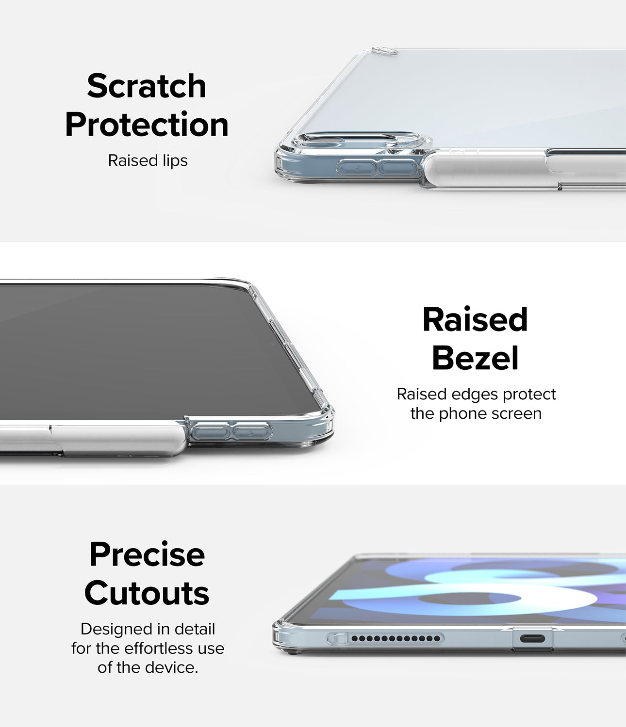 Raised lips protects front display from potential scratches and damage.