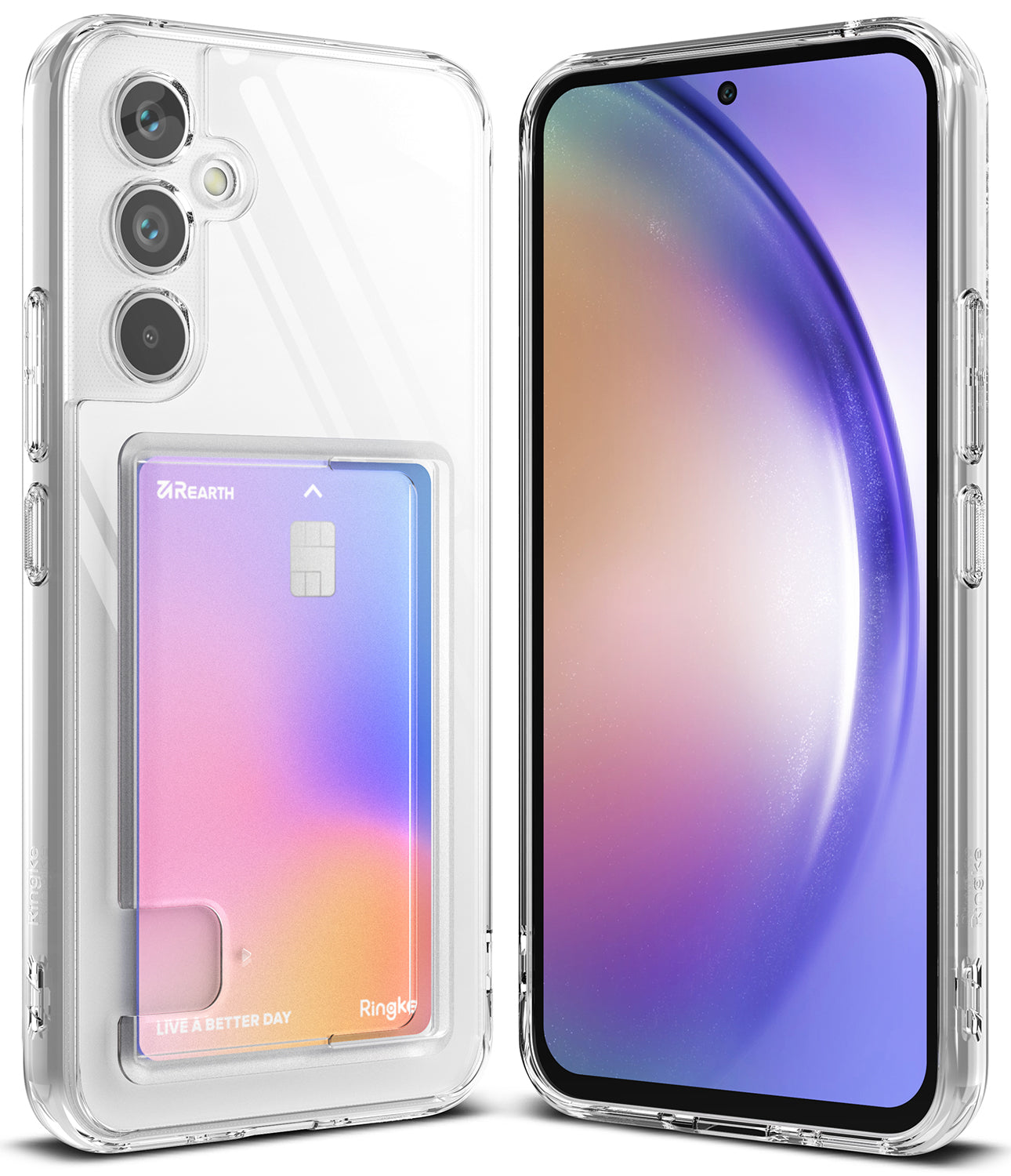 - Secure your Galaxy A54 5G in a minimalist design clear case with a built-in cardholder.