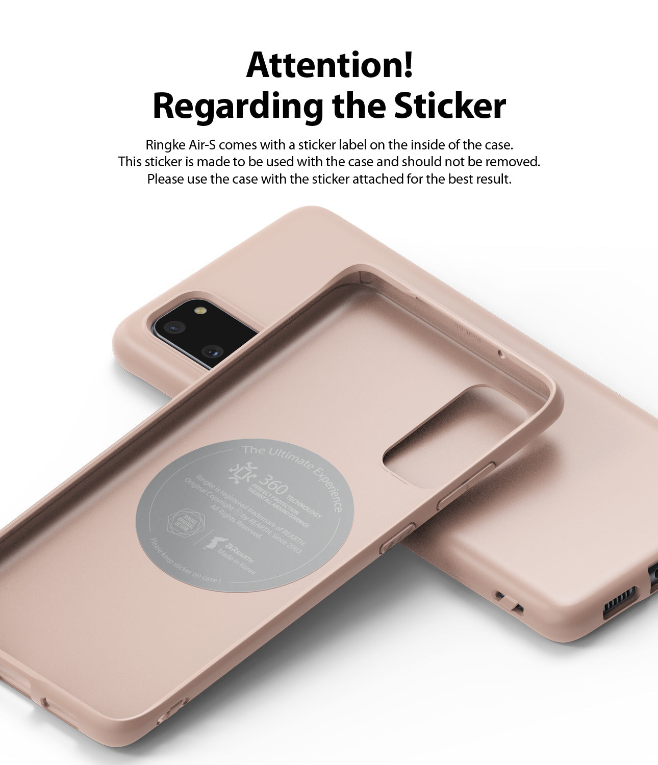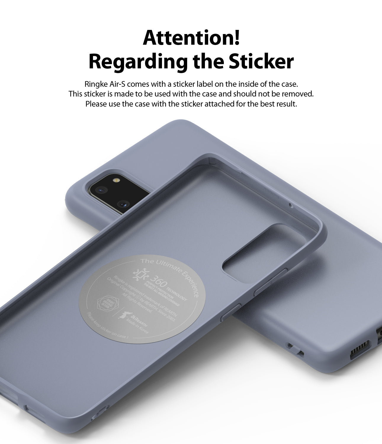 - Disclaimer - Air-S does not support adhesive accessories. (i.e. ring holder, cardholder, etc) The inside sticker is made to be used with the case and should not be removed.
