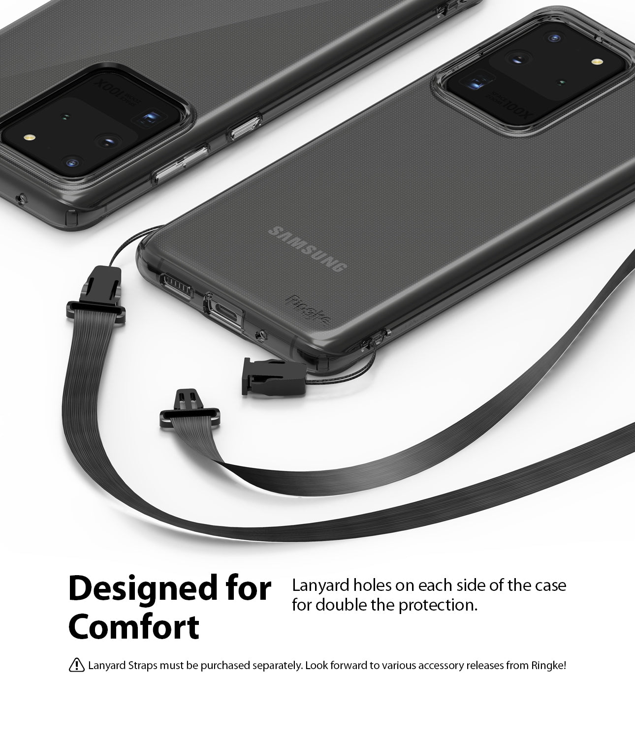 - Duo-QuikCatch - Lanyard holes available on both sides for versatility and utility. Make the device adaptable by using a variety of straps, such as finger, wrist, neck, and crossbody straps. (Straps not included)