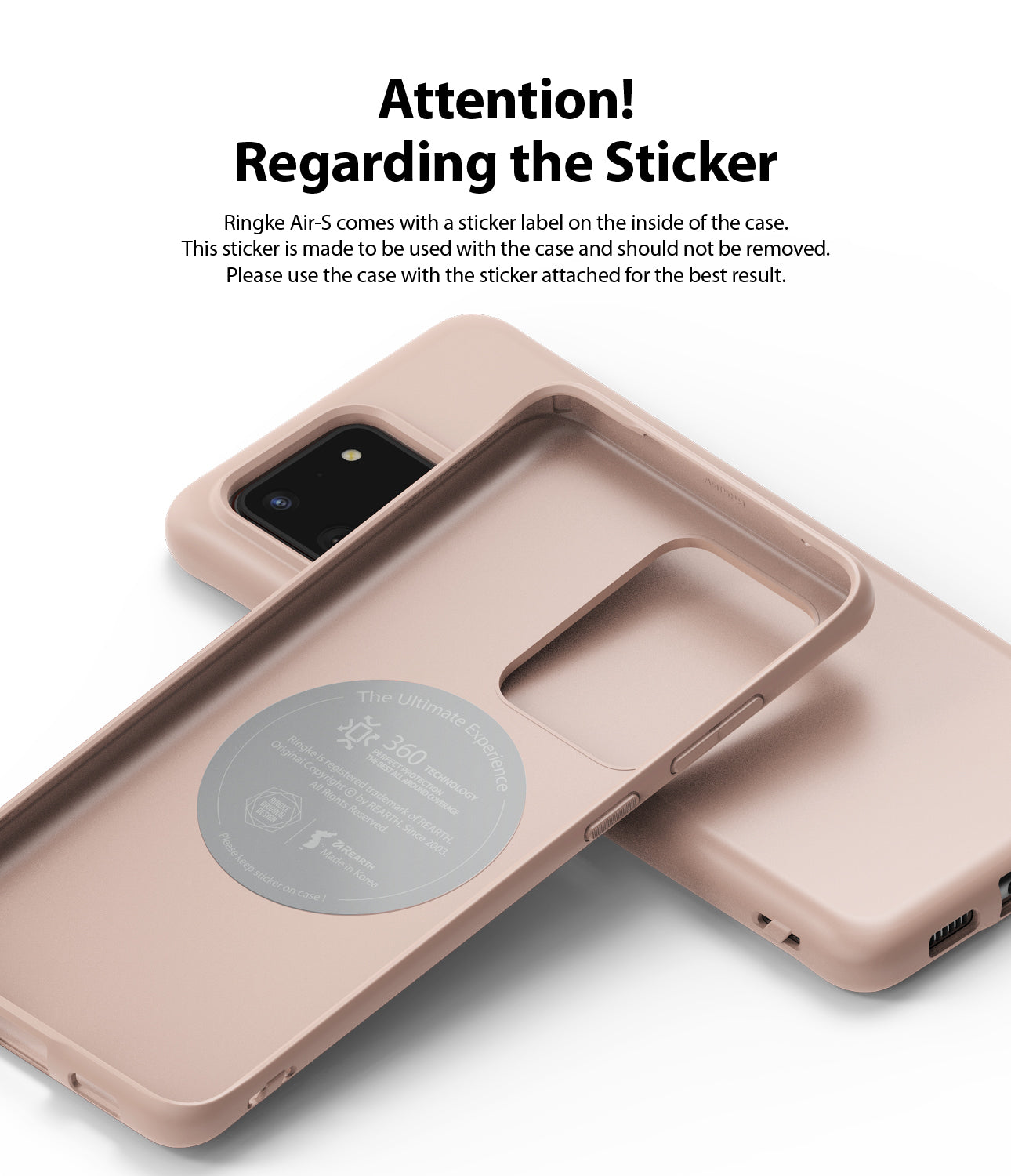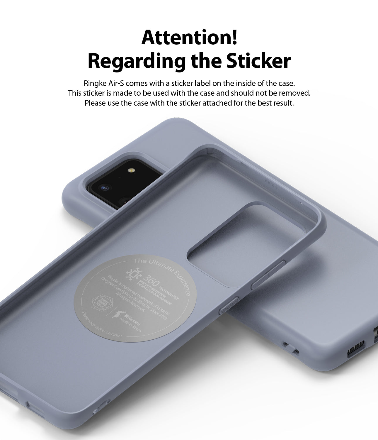 - Disclaimer - Air-S does not support adhesive accessories. (i.e. ring holder, cardholder, etc) The inside sticker is made to be used with the case and should not be removed.