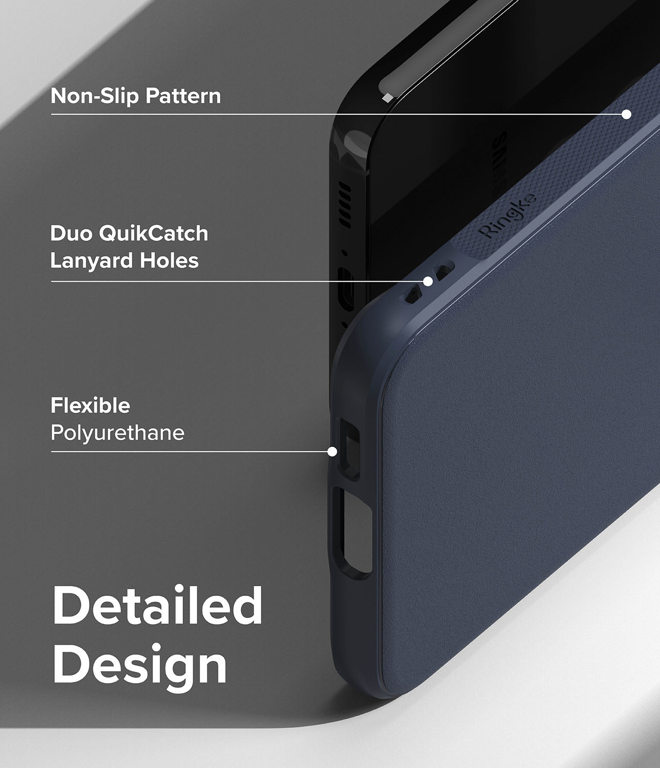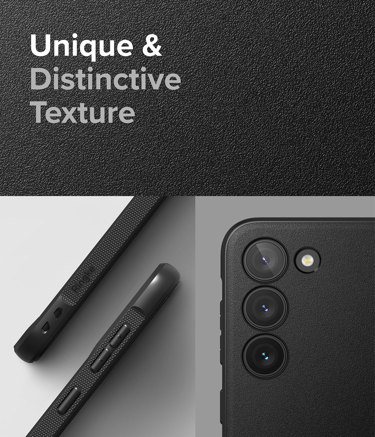 - Streamlined design with an anti-skid & anti-fingerprint granulate texture on the back and frame.