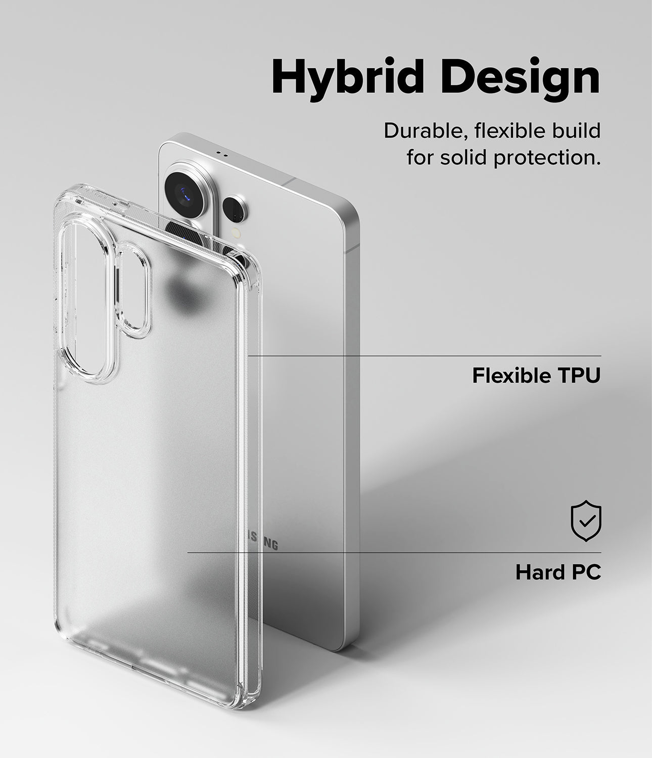 Hybrid case made of polycarbonate back and TPU frames