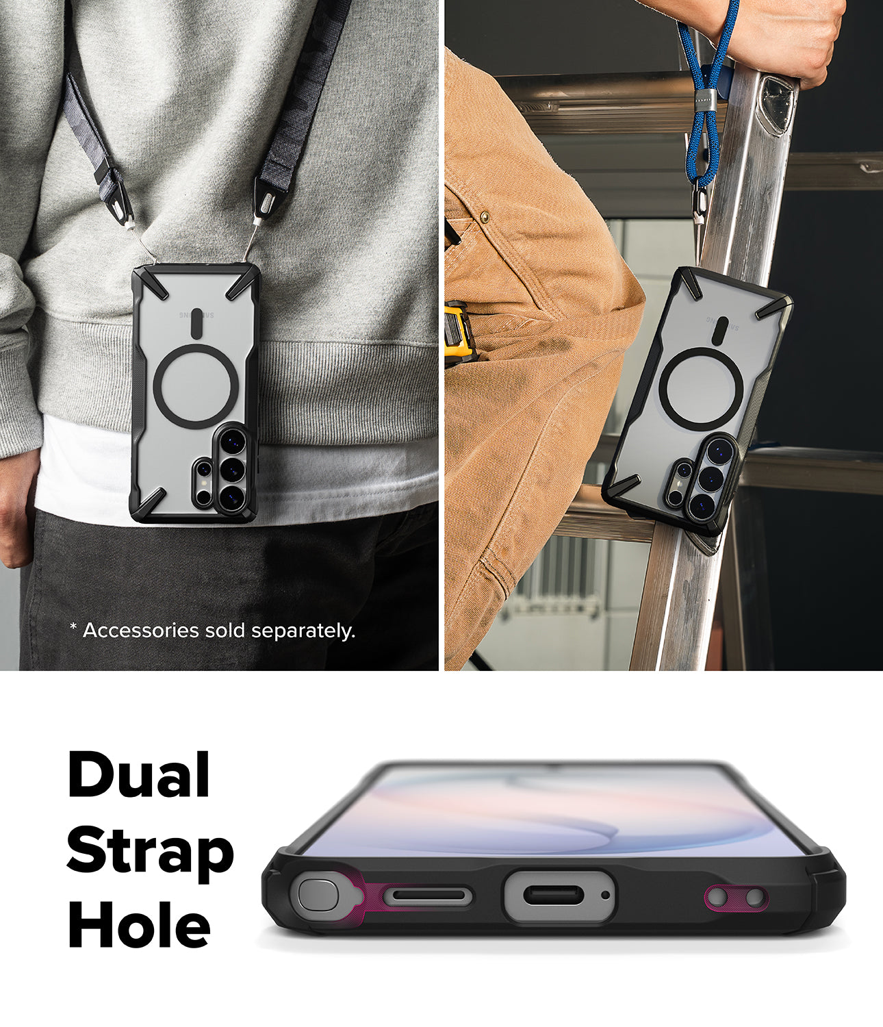Built-in strap holes to attach straps and other accessories