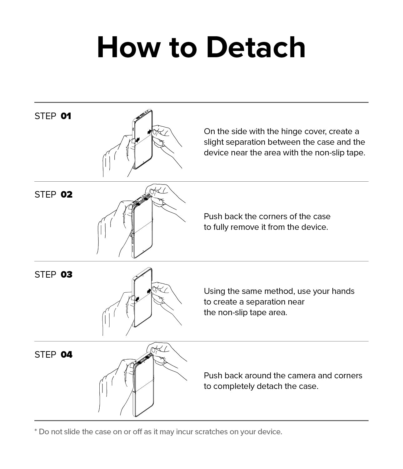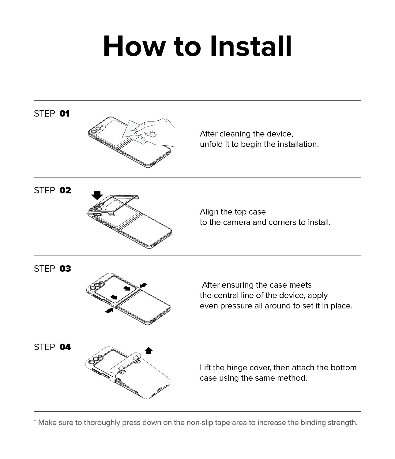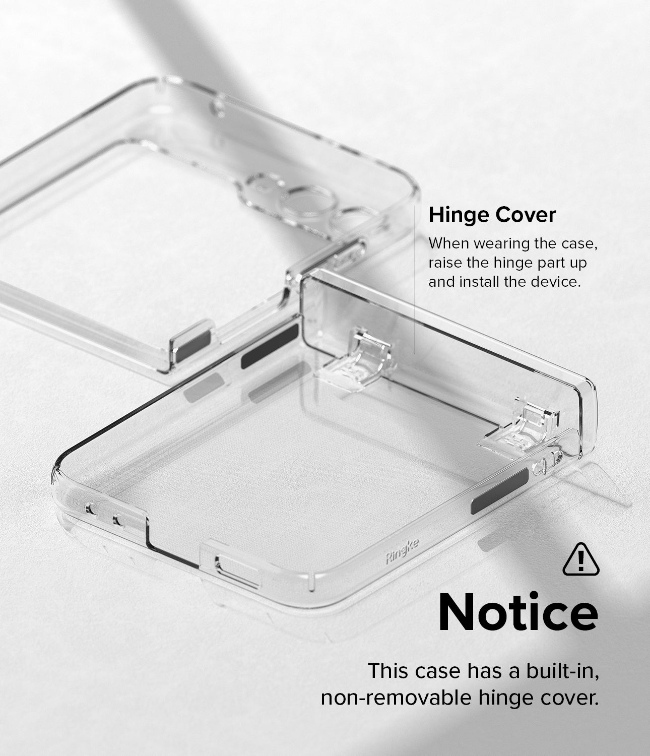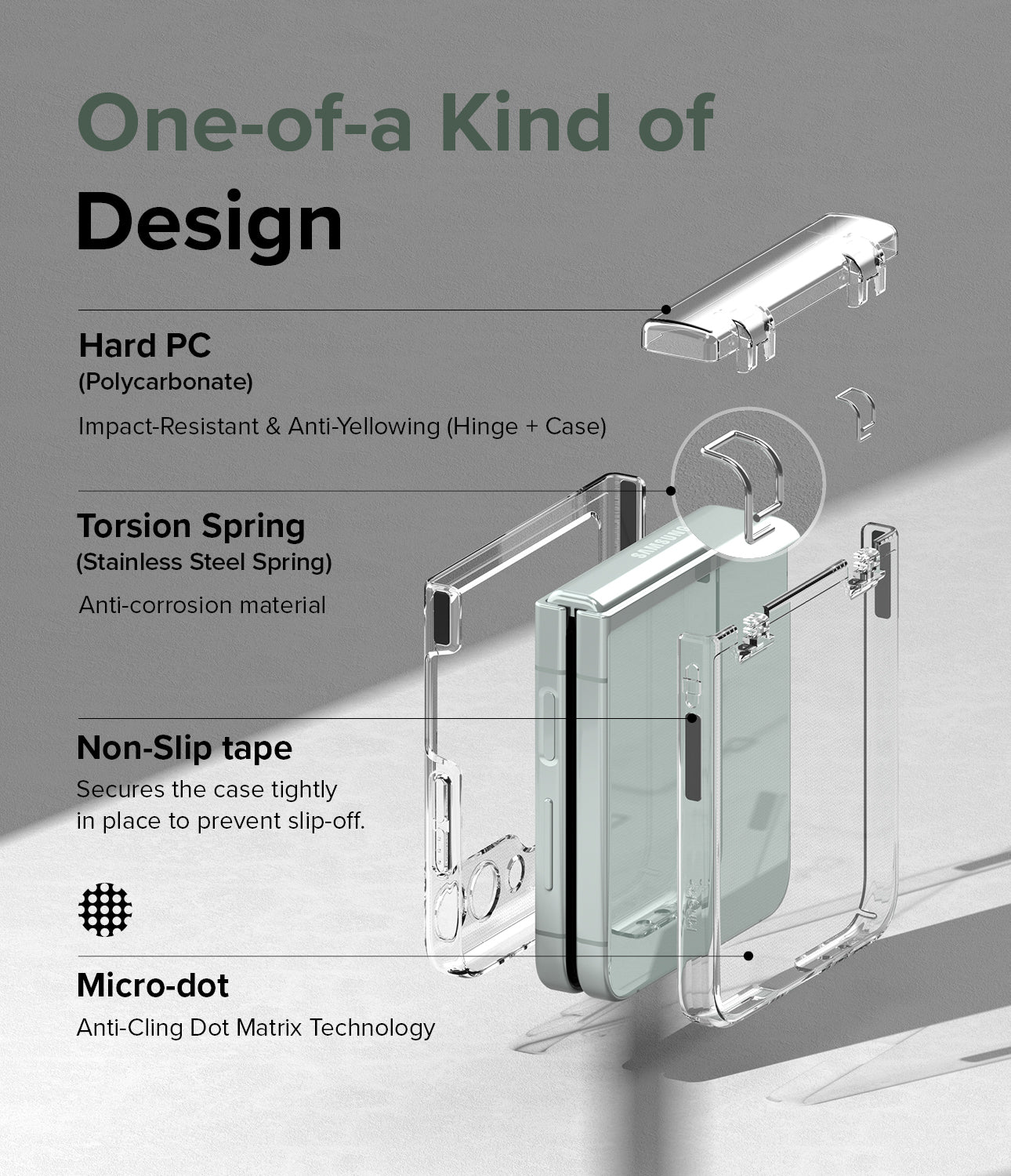 - Automated Hinge Protection via the torsion pin spring technology that smoothly covers the hinge when the device is folded.