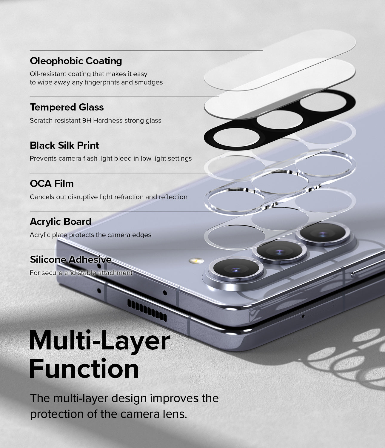 - Full-coverage tempered glass protector for the camera bezel and lenses on your Galaxy Z Fold 5