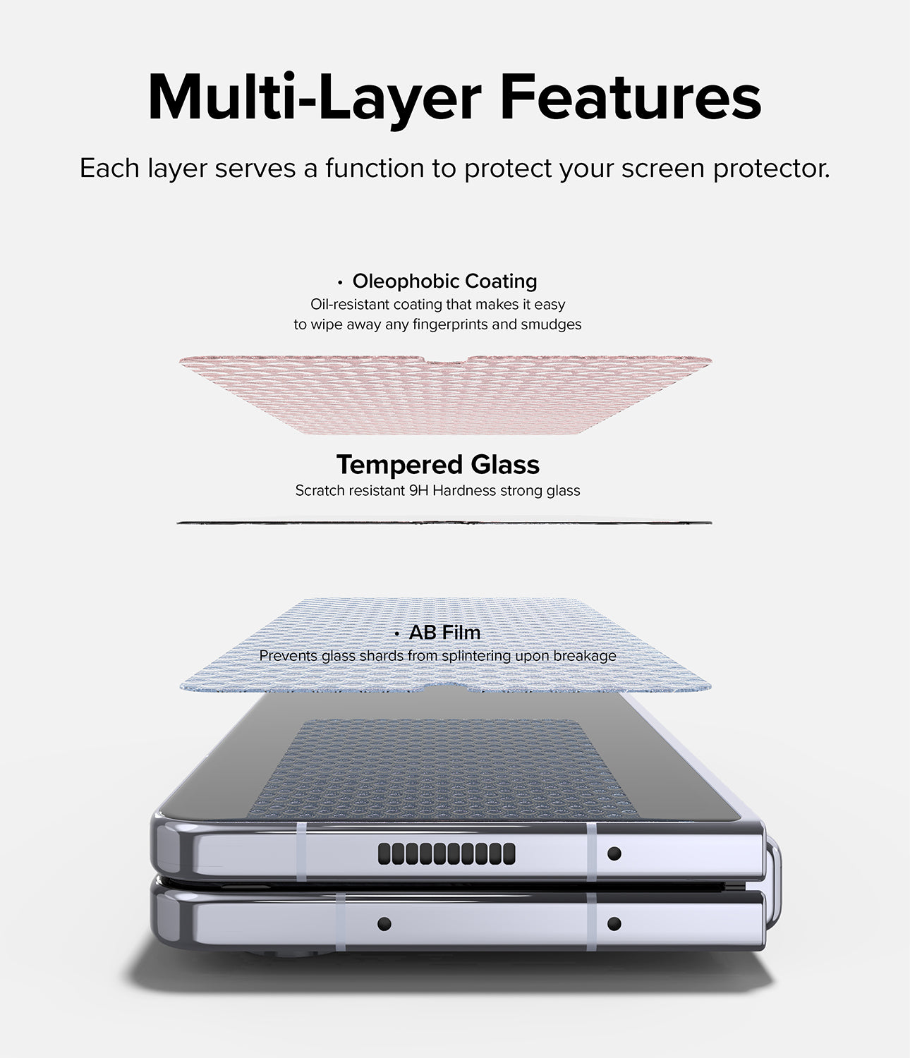 - Perfectly fitted to the outer Cover Screen Display with an oleophobic coating for smooth swipe and instant touch response