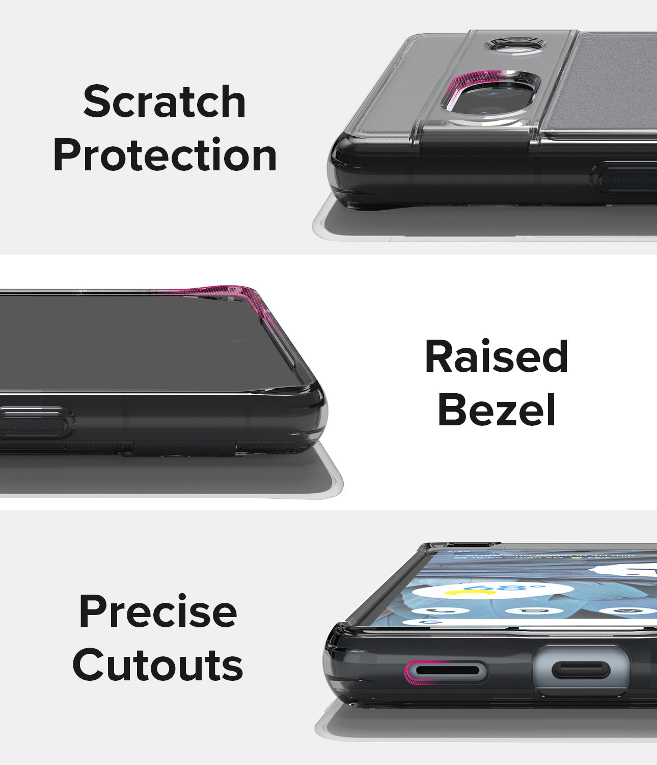 Anti-fingerprint matte coating! Secure your Google Pixel 7a in a minimalist hybrid case with a frosted clear back.