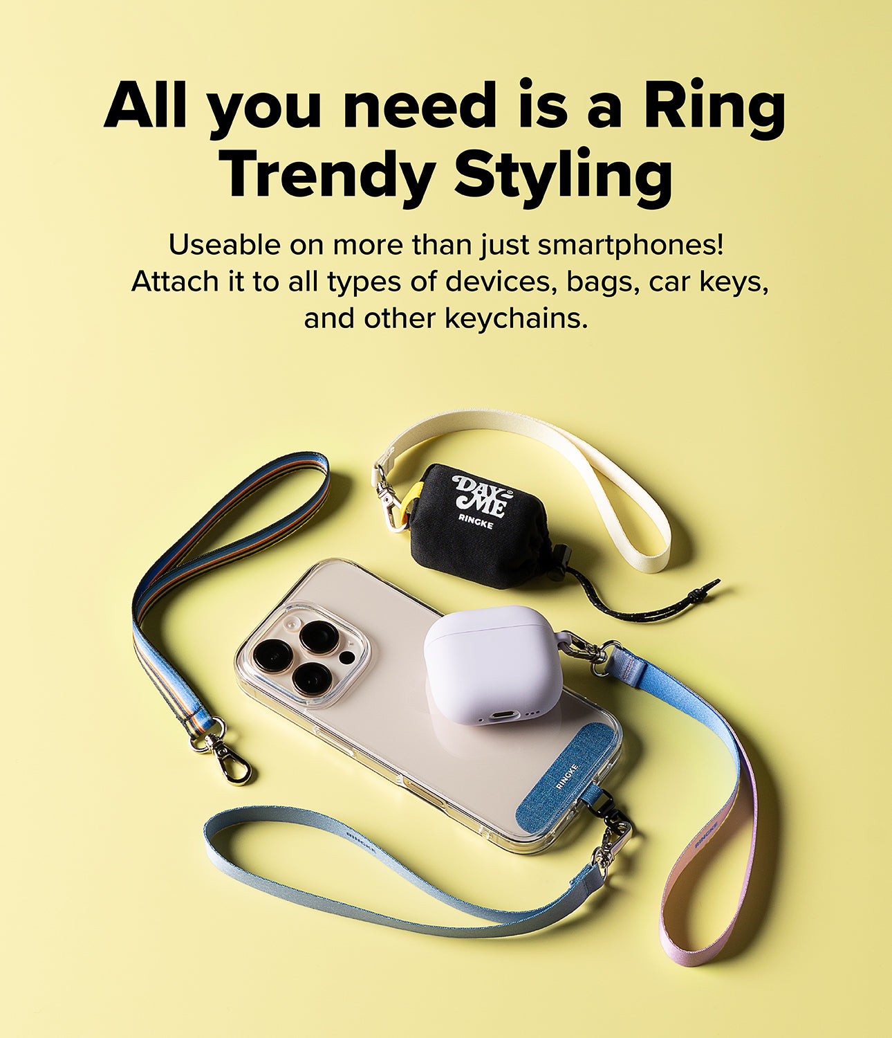 Universal wrist strap for phones, earbuds, and more