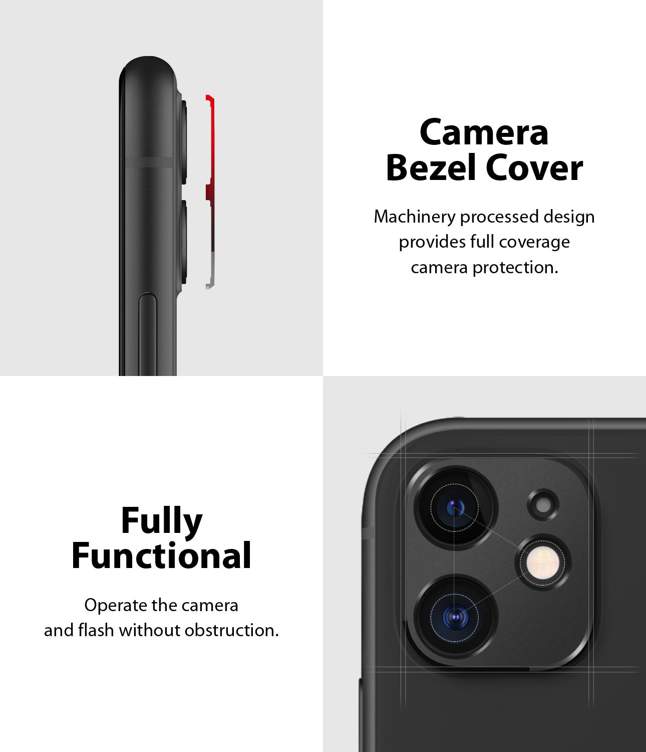 - Ringke Camera Styling is specifically made for iPhone 11. (NOT COMPATIBLE with iPhone 11 Pro & 11 Pro Max)