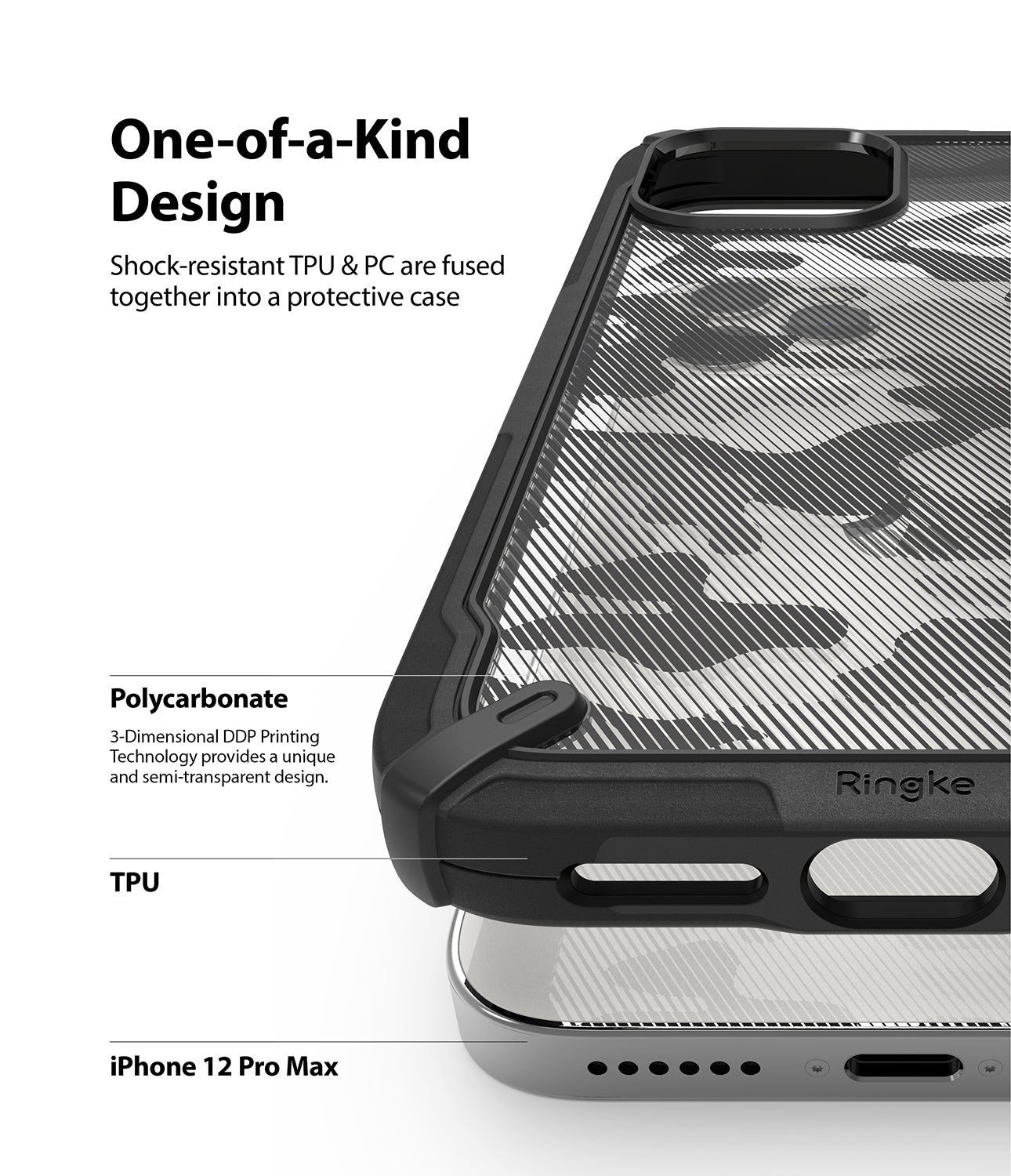 - See-through back & semi-transparent camo pattern shows off original design of device.