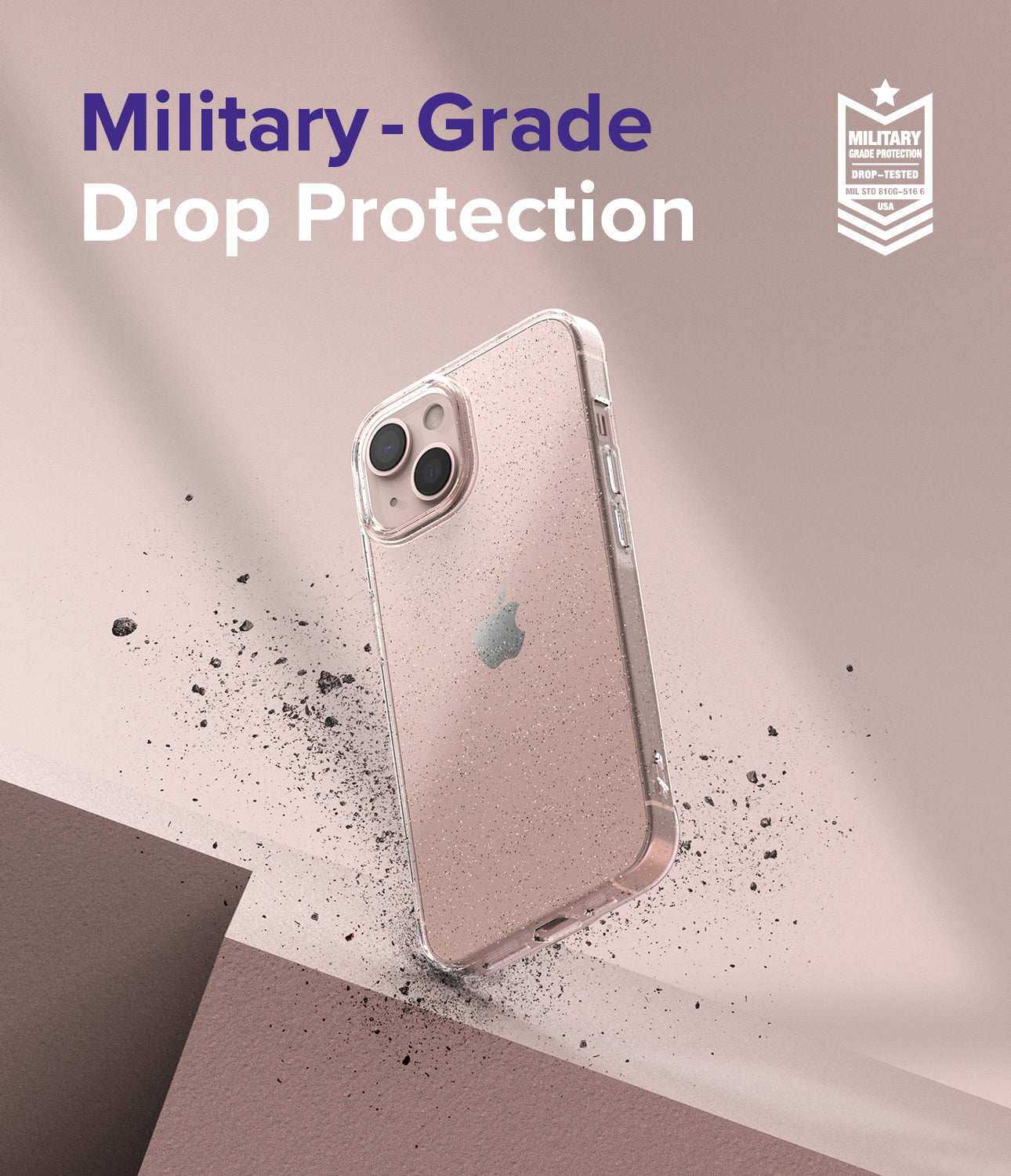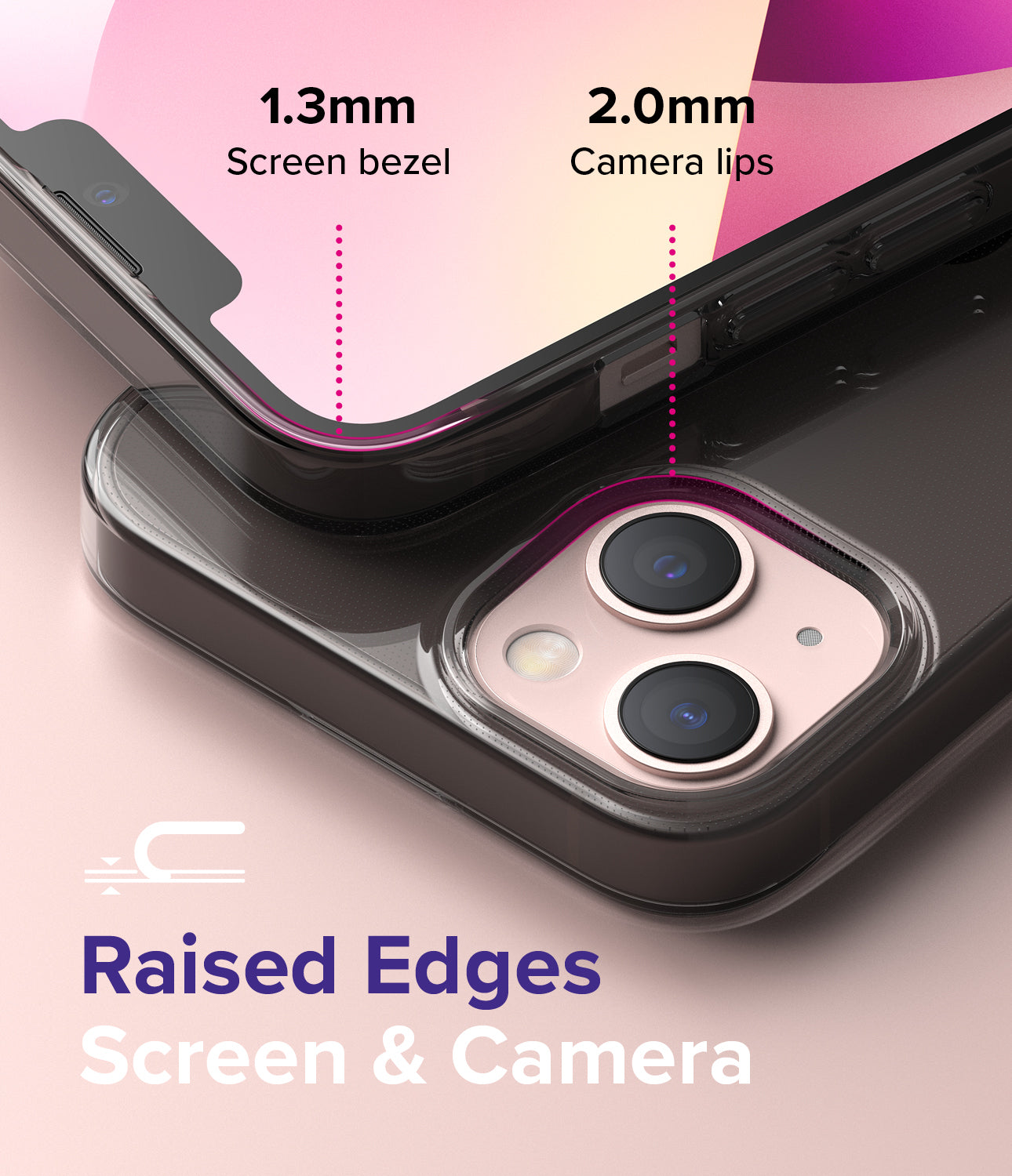 - Raised bezels carefully lift the front display away from flat surfaces.