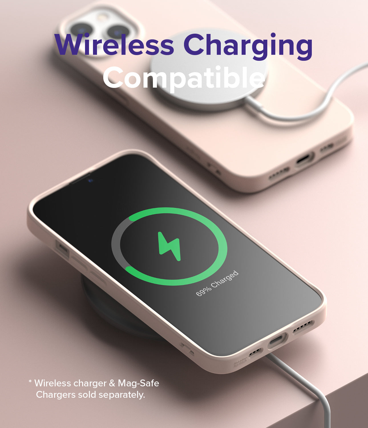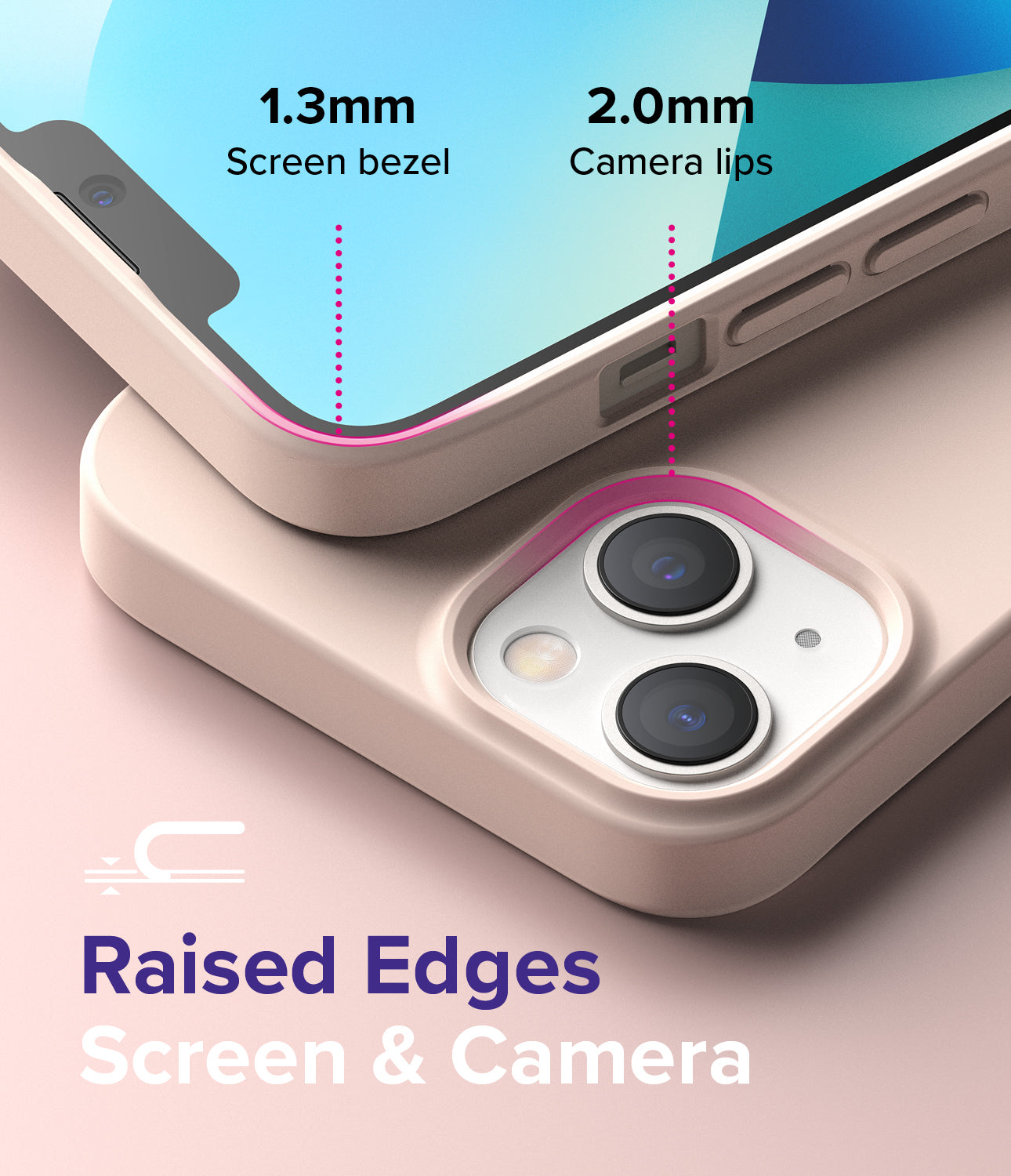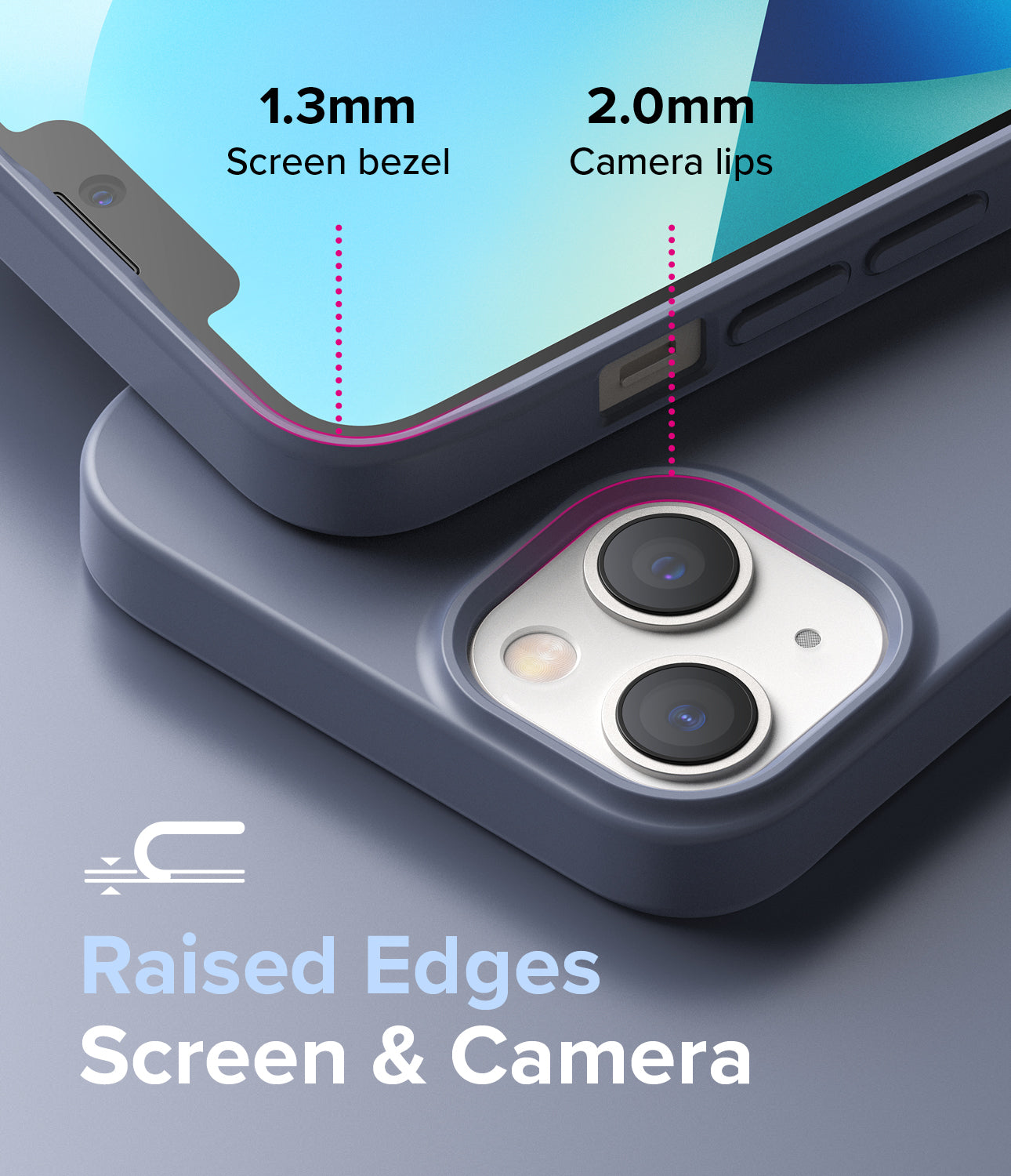 - Raised bezels carefully lift the front display away from flat surfaces.
