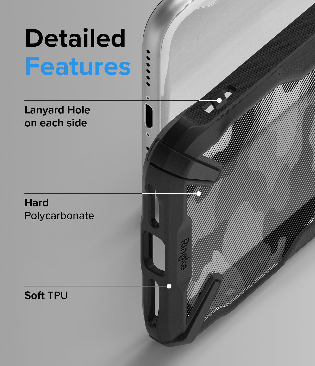 - Grip Control - The rugged exterior TPU bumper provides boosted grip control for comfortable handling.