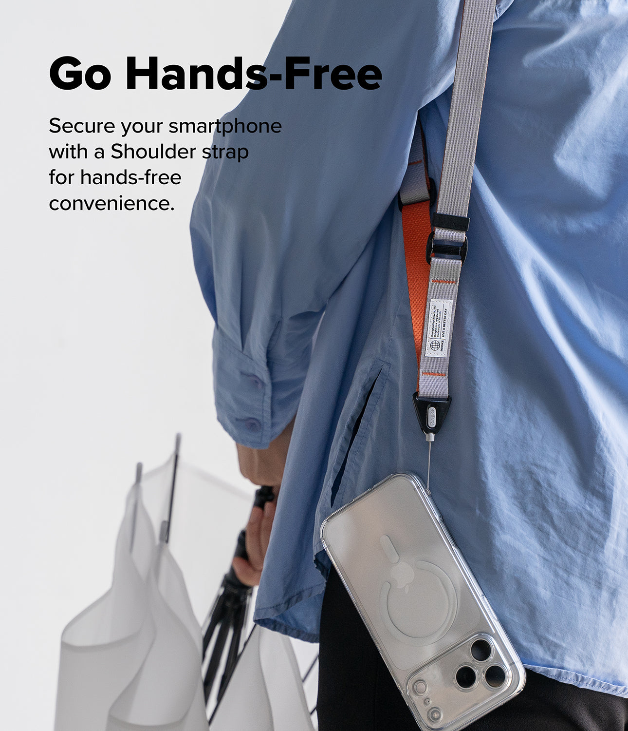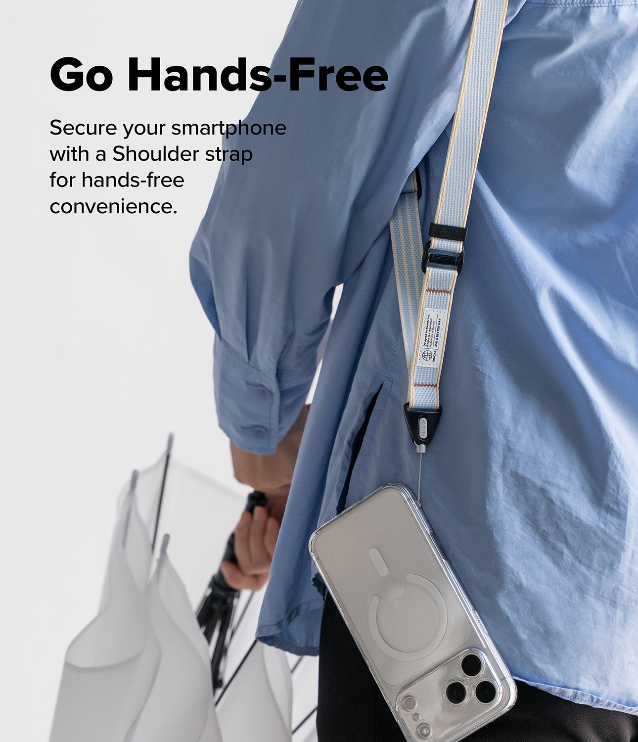 Dual-sided shoulder strap for smartphones and more