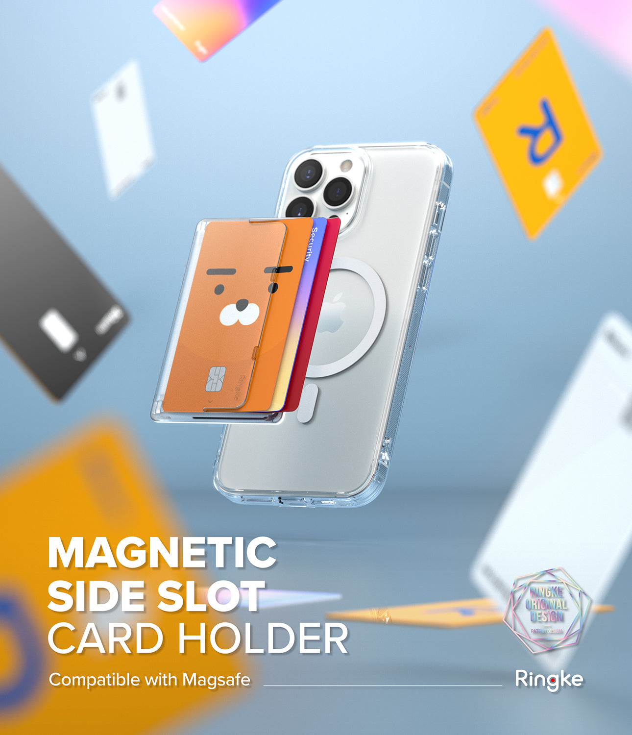- Slim, lightweight MagSafe compatible cardholder with a horizontal opening to securely hold up to 3 cards at a time
