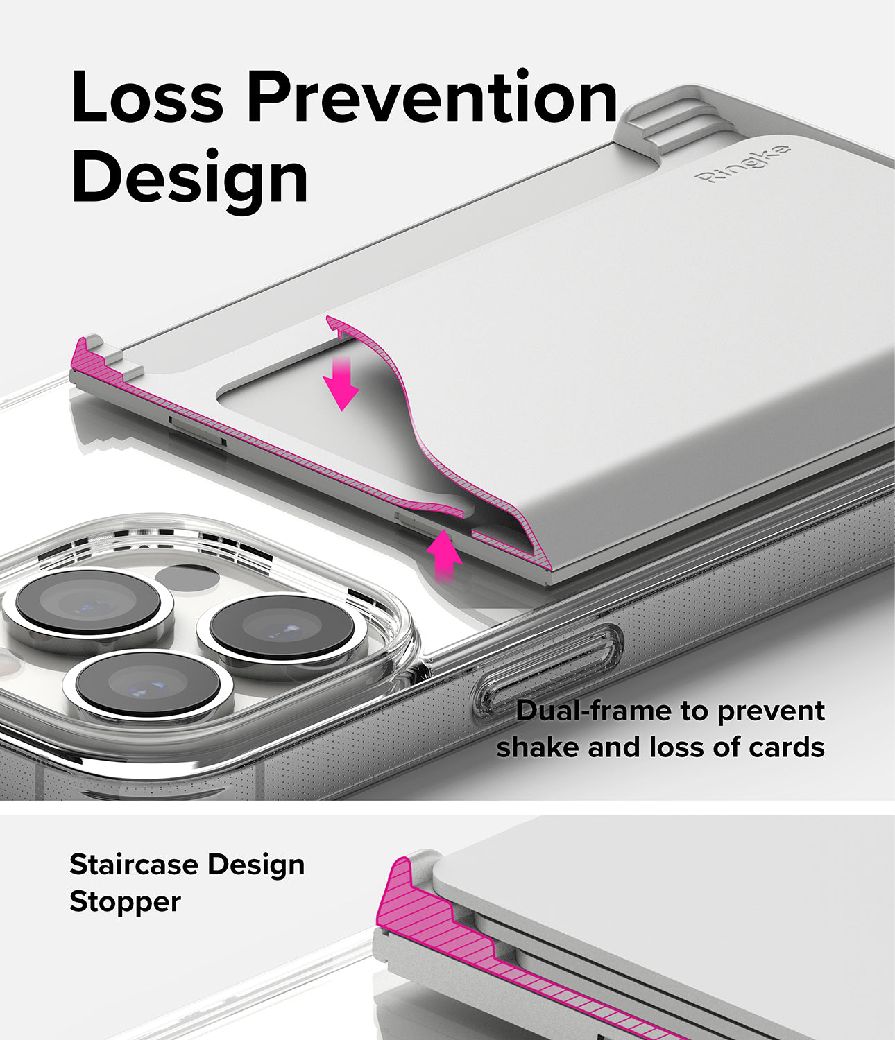 - Secure staircase design prevents accidental loss and the safety side-railings prevent scratches on your card and device