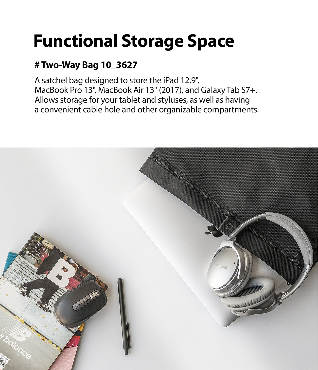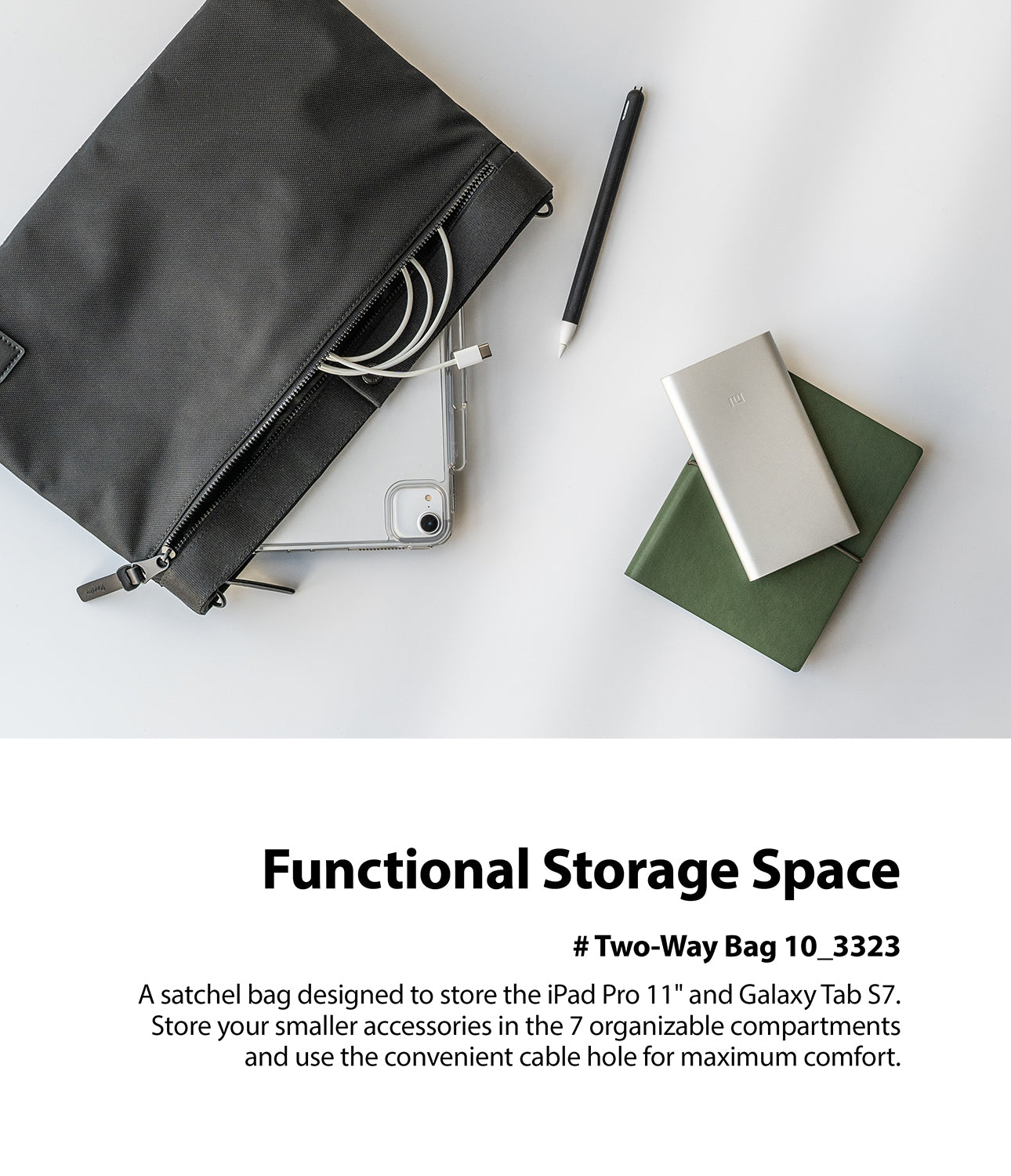 - Organizable Compartment - Store your smaller accessories in 2 separate pouches. Includes a convenient cable hole for quick and easy charging.