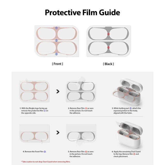- Ringke Dust Guard Sticker is compatible with Airpods Pro (2019). [NOT for Airpods 1 / Airpods 2]