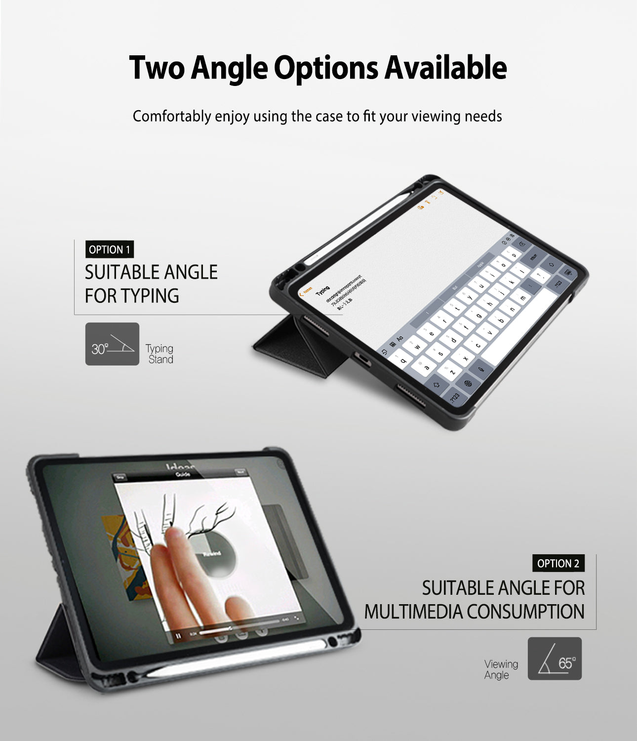 - Multi-viewing Angle - Case & Tablet Stand. Two angle-views for typing and watching video