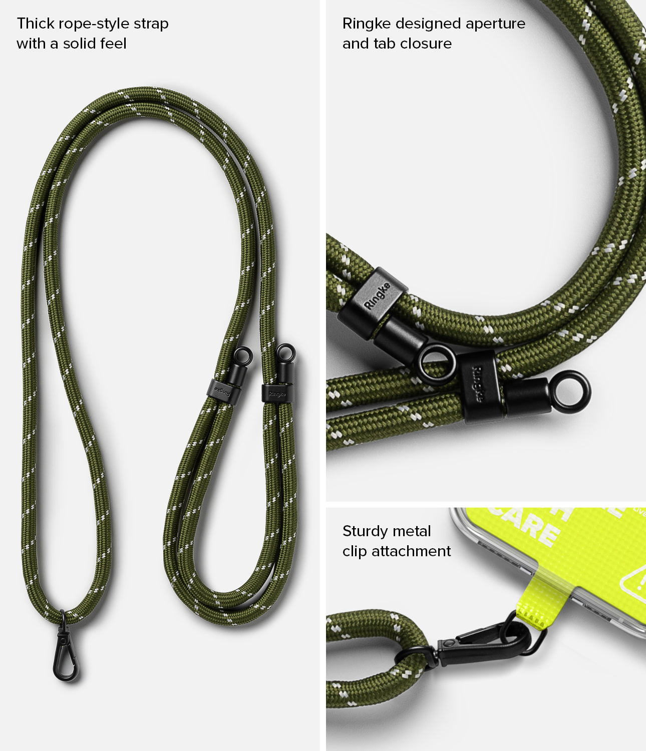 - Ringke-exclusive design universal smartphone tether with a strong, rope-style neck strap.