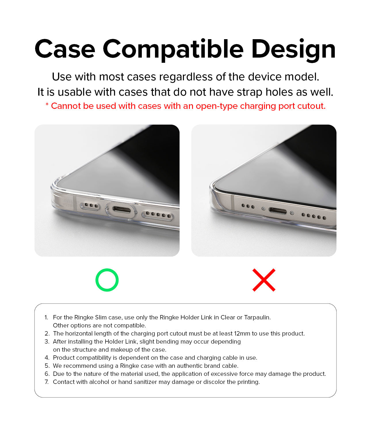 - The Holder Link is bulk-free and thin for easy portability and does not block the charging port.