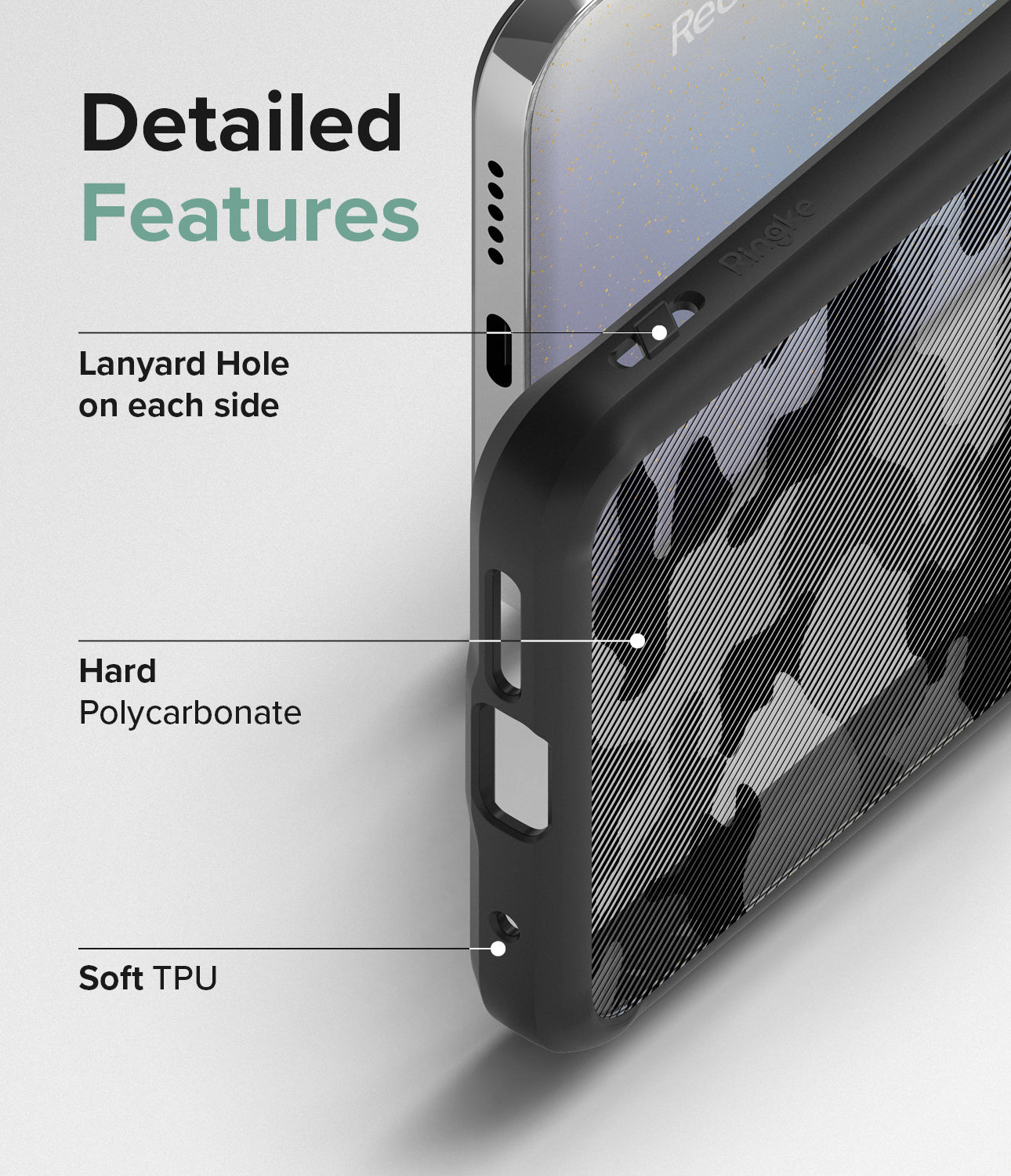 • Anti-fingerprint matte finish PC for MATTE CLEAR and MATTE CAMO BLACK.