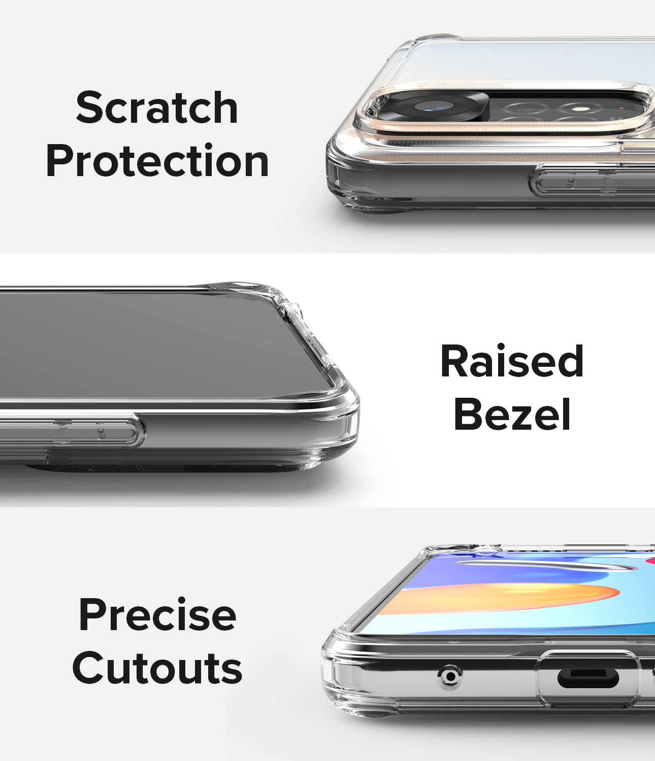 • Raised bezel lip protects front display screen and back camera from potential scratches.